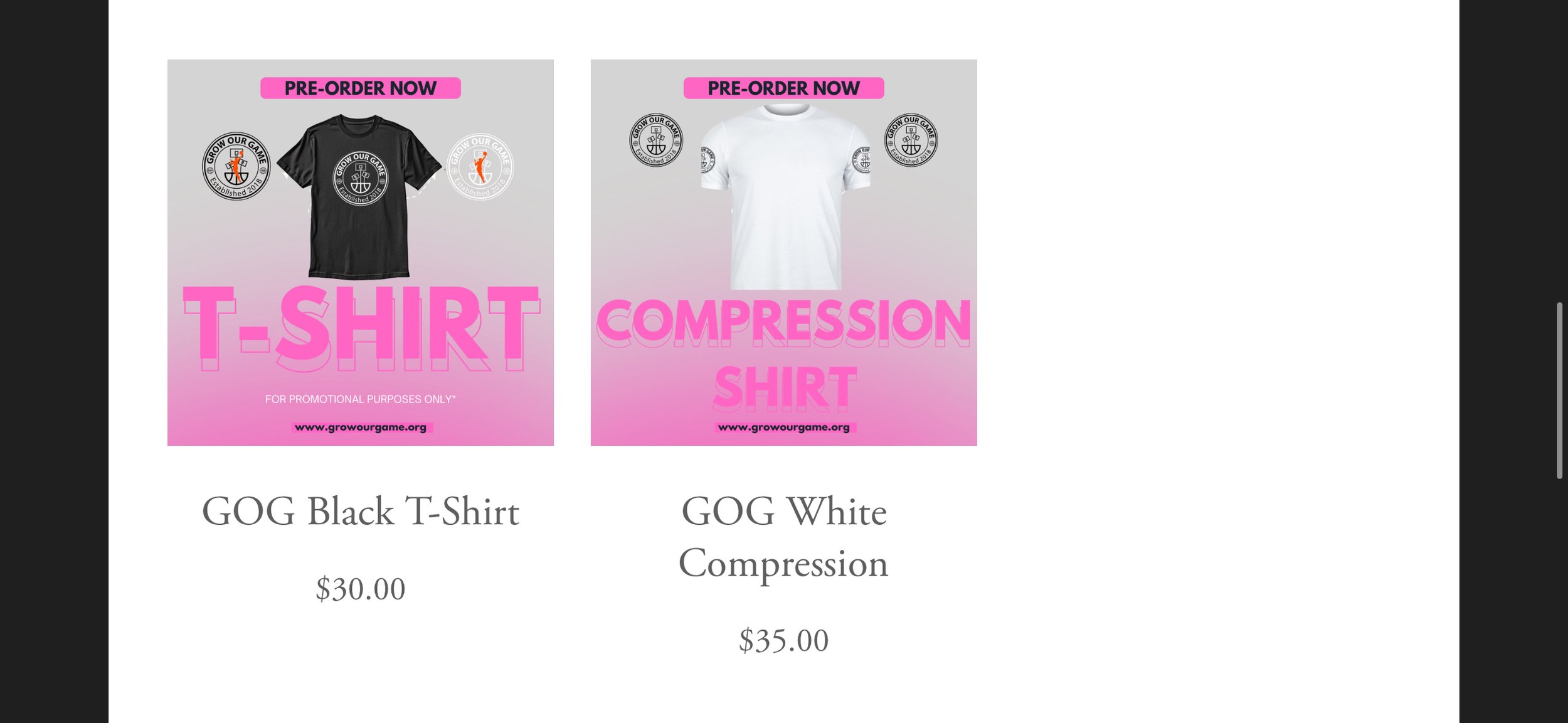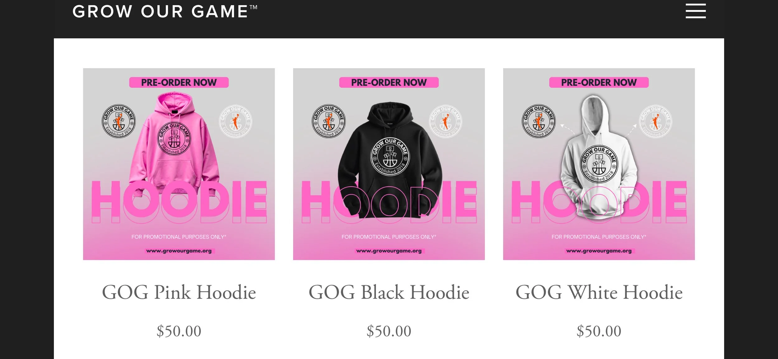 ALL PRE-ORDERS CAN BE MADE IN-PERSON AT ANY SESSION OR EMAIL INFO@GROWOURGAME.ORG